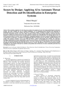 Mangla, Mukul (2025) Secure by Design: Applying AI to Automate Threat Detection and De-Identification in Enterprise Systems. International Journal of Innovative Science and Research Technology, 10 (8): 25AUG1503. pp. 2535-2546. ISSN 2456-2165