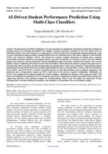 K., Vijaya Kumar and A., Naveen (2025) AI-Driven Student Performance Prediction Using Multi-Class Classifiers. International Journal of Innovative Science and Research Technology, 10 (9): 25SEP1354. pp. 2639-2645. ISSN 2456-2165
