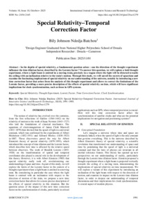 Batchou, Bily Johnson Ndedja (2025) Special Relativity–Temporal Correction Factor. International Journal of Innovative Science and Research Technology, 10 (10): 25OCT1279. pp. 1991-1995. ISSN 2456-2165